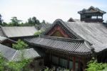 中國古建筑的精髓 一、屋頂 屋頂最上方為一條橫向的屋脊,稱為正脊. 較大的殿宇的正脊兩端有鴟吻(鴟尾、龍吻). 垂(斜)脊的外端(檐角一端)排列著一系列脊飾,最外面是若干個小動物稱為蹲獸,最后面龍頭狀的,稱為垂獸。 中國古代建筑的屋頂可分為廡殿式頂、歇山式頂、懸山式頂、硬山式頂、攢尖式頂和錄頂等形式。按屋檐的層數分,廡殿頂、歇山頂和攢尖頂又分為單檐和重檐兩種。歇山式、懸山式和硬山式又分出一種沒有正脊的卷棚式屋頂。此外,歇山式還分出一種極少見的十字歇山頂。 1、廡殿頂 廡殿頂 又稱四阿頂,五脊四坡式,又叫五脊頂。前后兩坡相交處是正脊,左右兩坡有四條垂脊,分別交于正脊的一端。廡殿頂分為單檐和重檐兩種,重檐廡殿頂,是在廡殿頂之下,又有短檐,四角各有一條短垂脊,共九脊。現存的古建筑物中,如太和殿和曲阜孔廟大成殿。重檐廡殿頂是清代所有殿頂中最高等級,只有皇帝和孔子的殿堂可以使用。 ▲圖為重檐廡殿頂宮殿建筑 2、歇山頂 歇山頂又稱九脊頂,除一條正脊、四條垂脊外,還有四條戧脊。正脊的前后兩坡是整坡,左右兩坡是半坡。歇山頂主要分為單檐和重檐兩種,重檐歇山頂的第二檐與廡殿頂的第二檐基本相同。在等級上僅